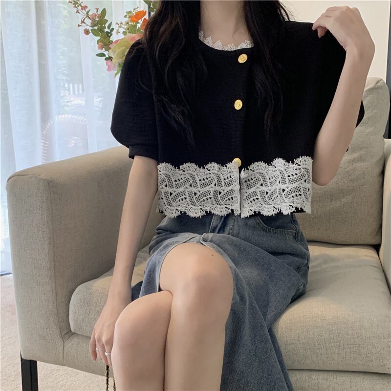 Xiaoxiangfeng short top women's design sense niche summer French gentle style chic high puff sleeve shirt ショート サマー 夏物 s576118991732697