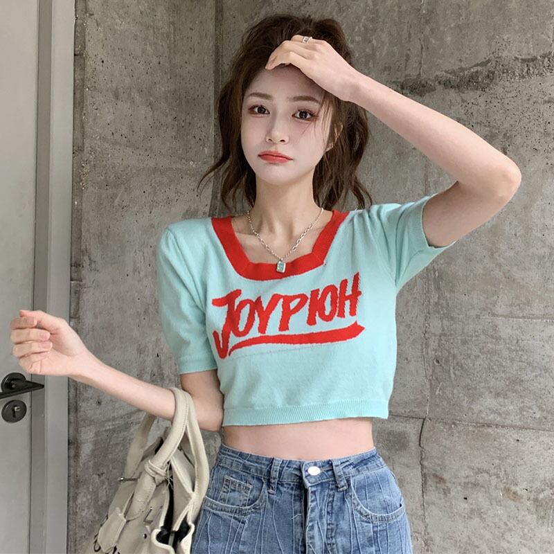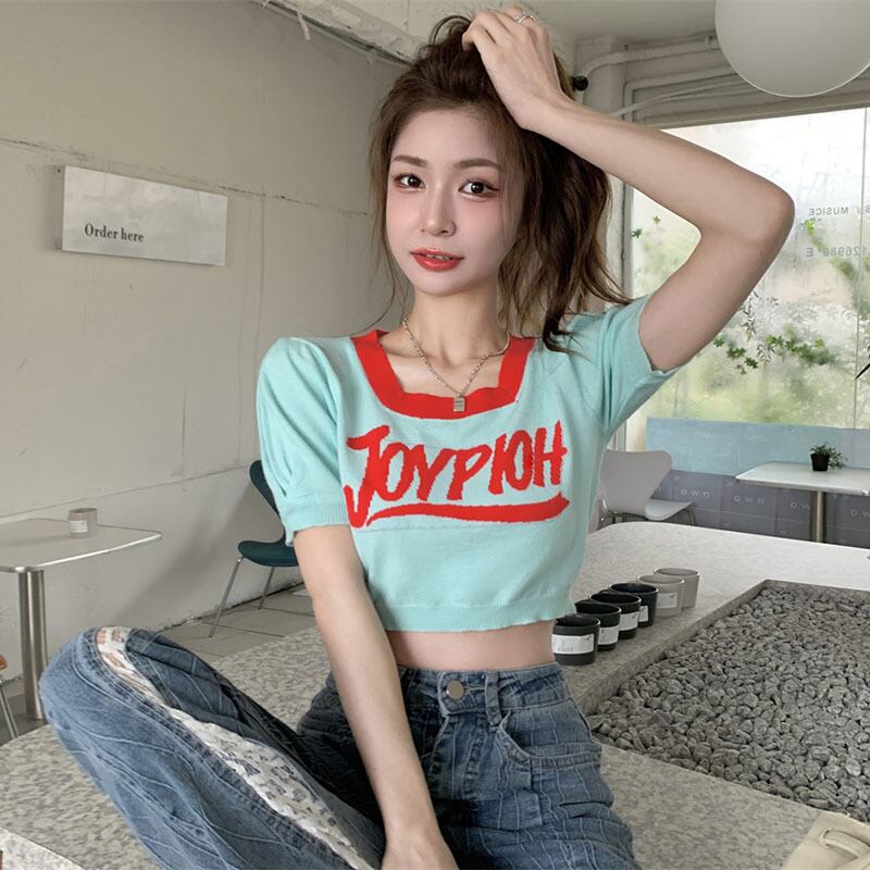 European and American short-sleeved T-shirt women's design sense niche summer chic chic knitted short top ins tide ショート サマー 夏物 Tシャツ ヨーロピアン s57613845424225