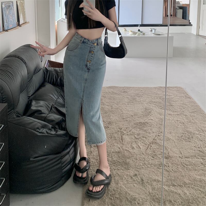 Denim skirt women's summer design sense small one-step skirt 2022 new high waist thin slit long skirt ハイウェスト ロング サマー 夏物 スカート s576143771472563