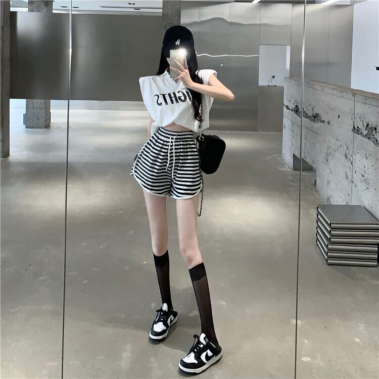 Striped sports shorts women's summer wear fitness casual pants 2022 new small high waist wide leg pants ハイウェスト カジュアル サマー 夏物 ショーツ ブルマー ストライプ ワイドレッグ ワイドパンツ s576181976293293