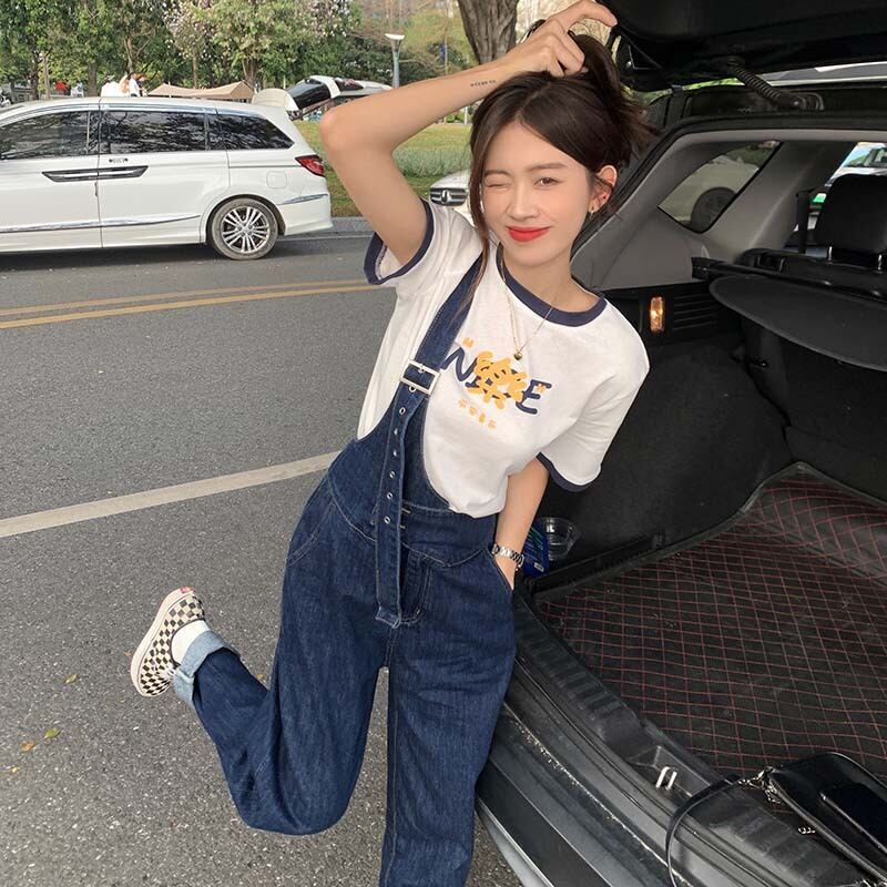 One-shoulder denim overalls women's design sense niche 2022 new summer cute ese small wide-leg pants 大人ガーリー スウィート キュート カジュアル サマー 夏物 s576121354976182