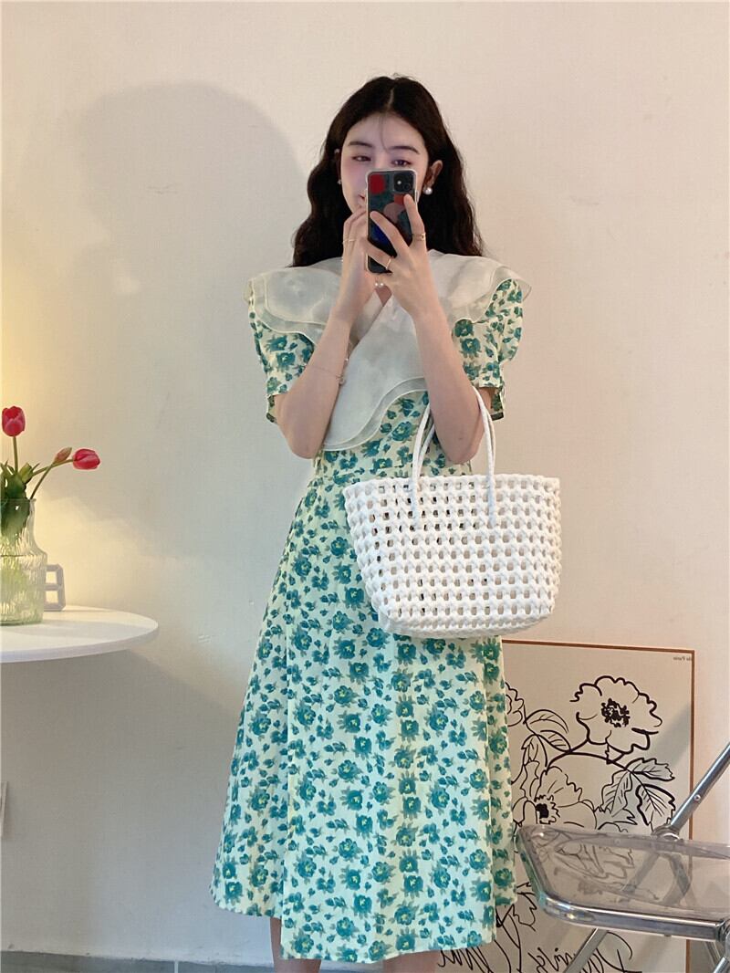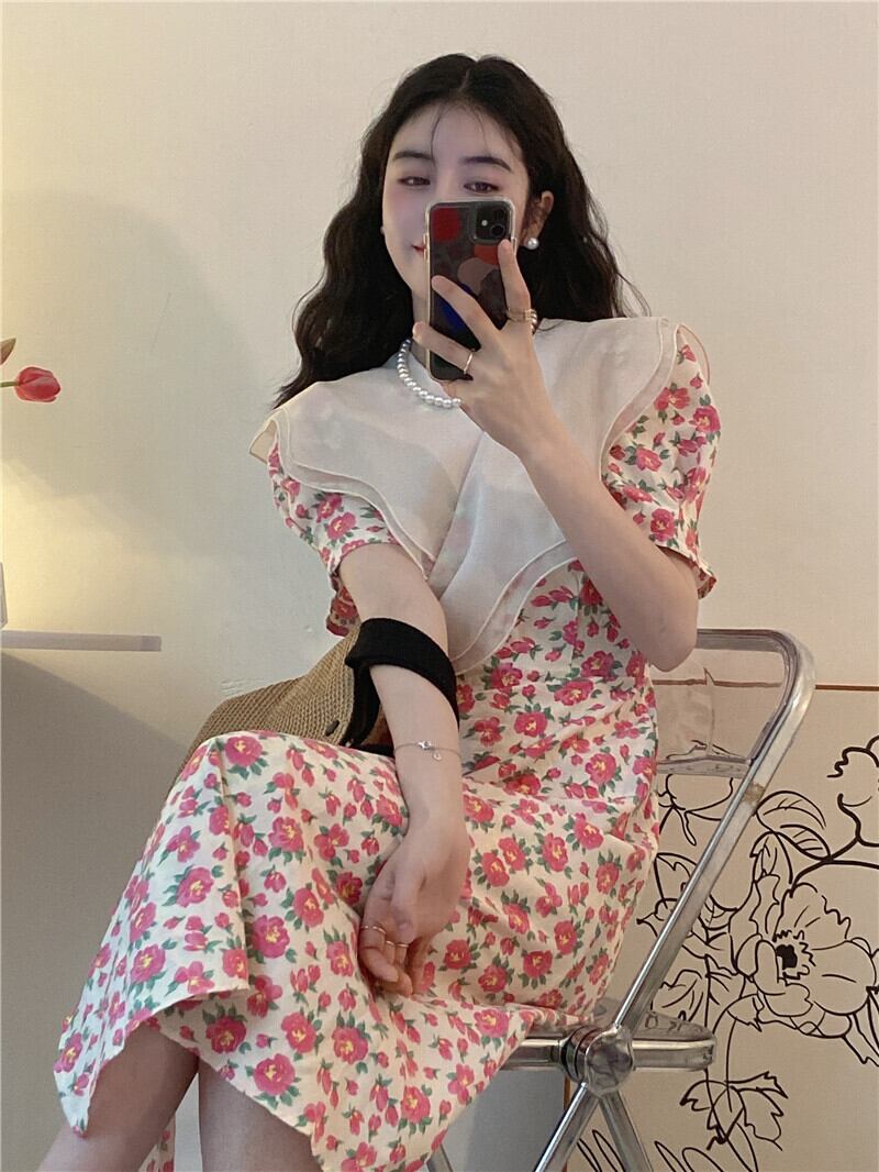 Puff sleeve floral dress female summer 2022 new French first love gentle wind temperament goddess fan long skirt ロング サマー 夏物 花柄 スカート s576178600583262