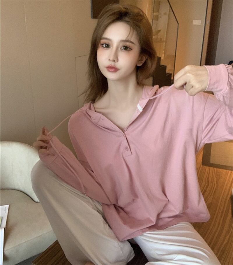 Gray hooded long-sleeved T-shirt women's spring 2022 new design sense niche loose casual cotton top clothes ロング コットン カジュアル スプリング 春物 Tシャツ s576136777648017
