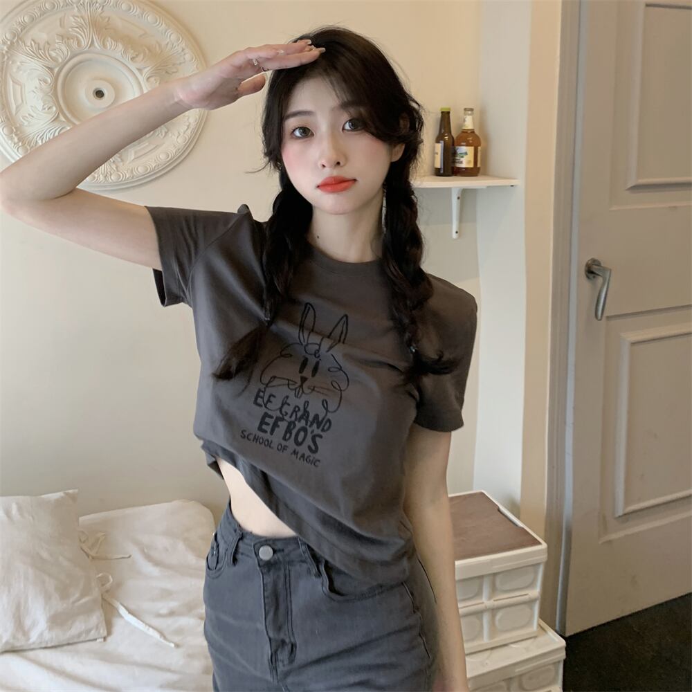 Pink short-sleeved T-shirt women's summer 2022 new fashion western style all-match design sense niche short top ins tide ショート ピンク サマー 夏物 Tシャツ s576179945801110