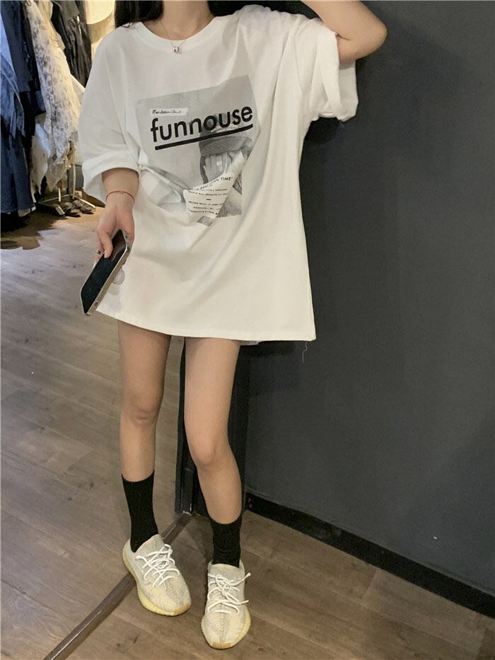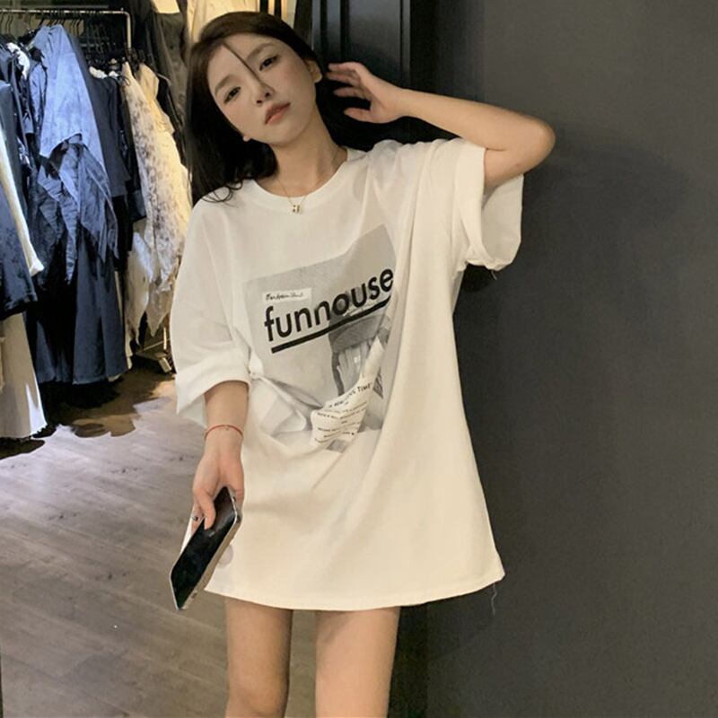 White short-sleeved T-shirt women's summer 2022 new design sense niche American retro loose medium and long top clothes ロング ホワイト レトロ サマー 夏物 Tシャツ s576192828376198