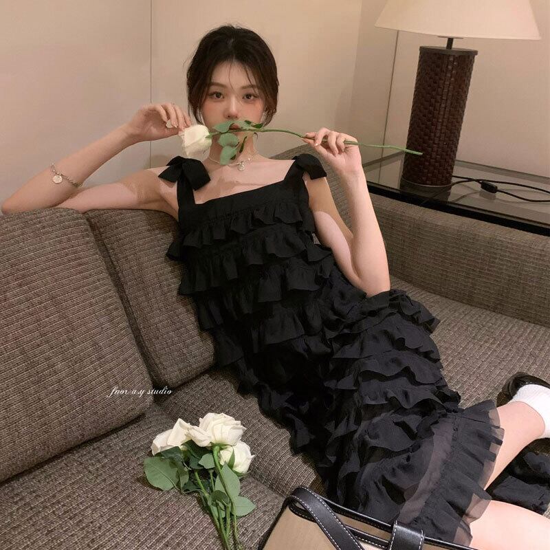 Sweet babes dress female summer 2022 new ruffled black cake skirt tutu skirt mid-length suspender skirt ブラック 大人ガーリー スウィート キュート カジュアル サマー 夏物 スカート パニエ ペチコート s576112701595860