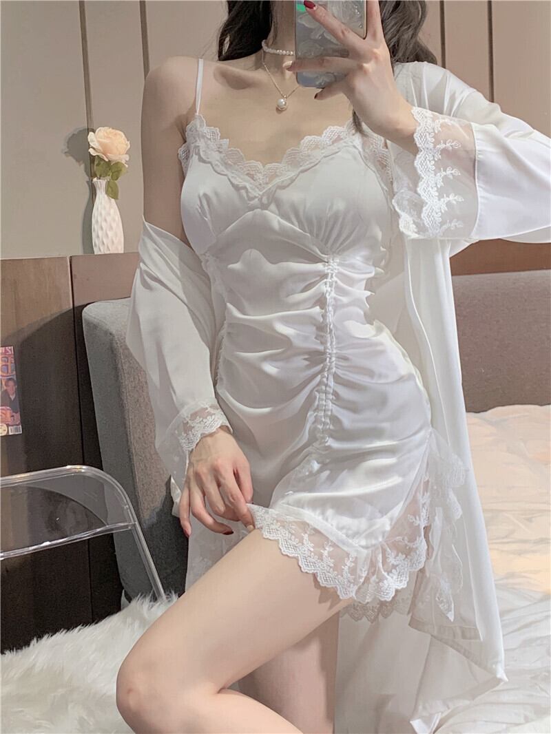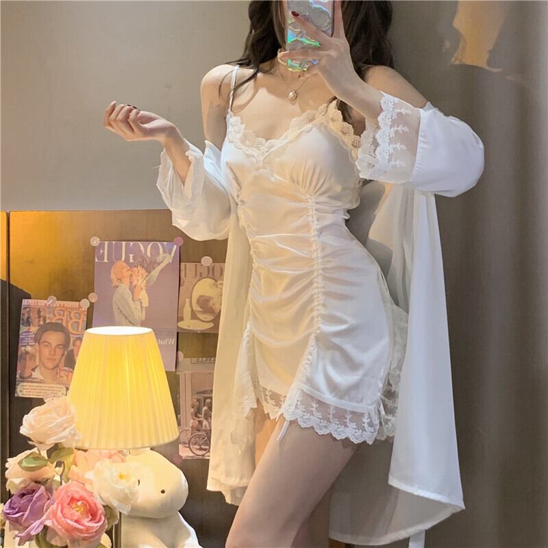 Lace suspender nightdress women's spring two-piece set 2022 new pure desire sexy small net red home service suit レッド レース スプリング 春物 ピュア s576175268163487