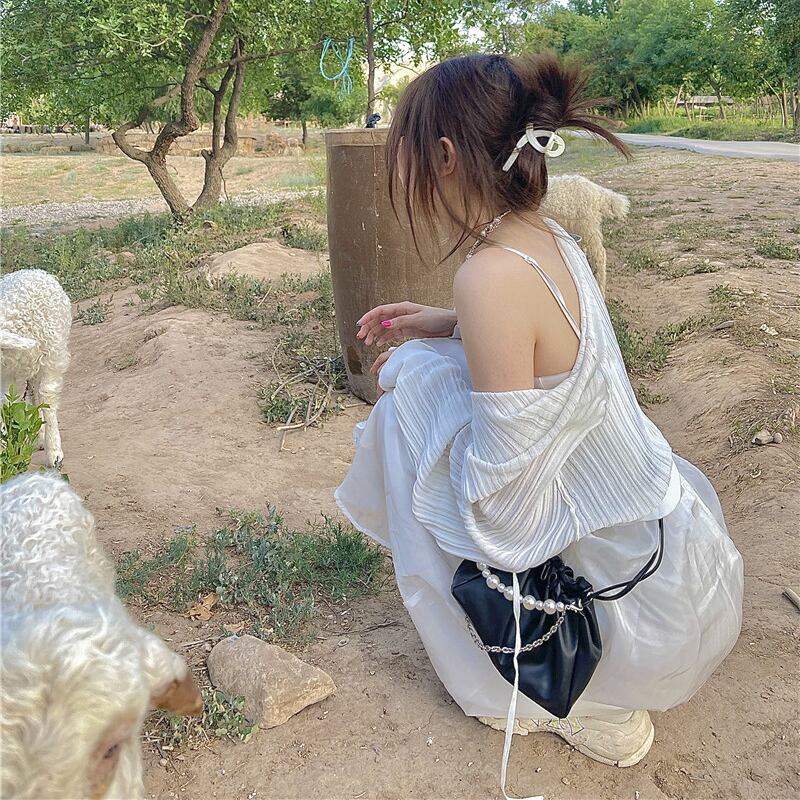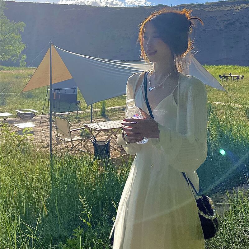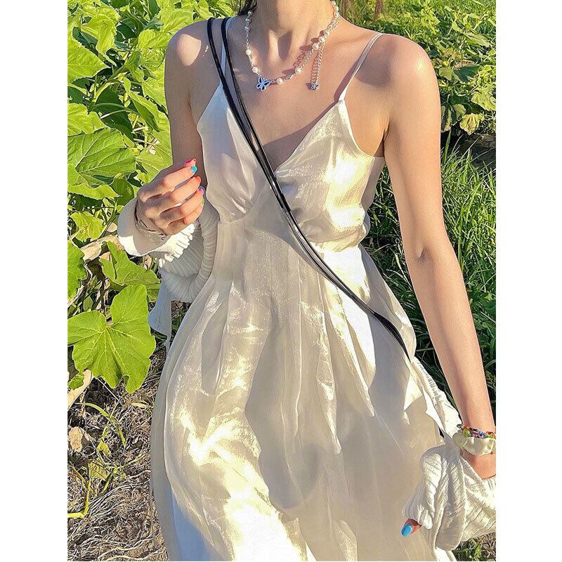 White suspender dress women's design sense niche 2022 new summer high-end gentle and chic pearly long skirt ロング ホワイト サマー 夏物 スカート パール 真珠 s576131927662487