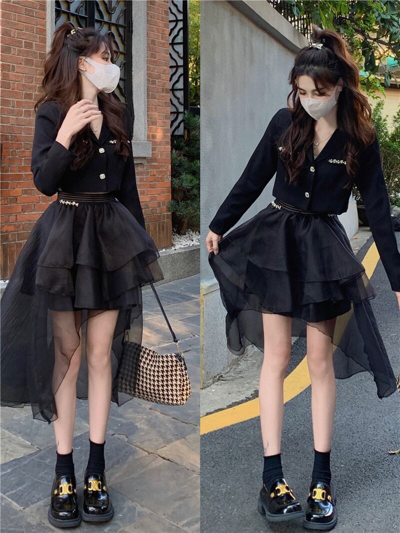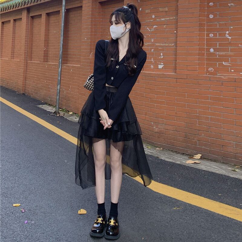 Black mesh skirt women's summer 2022 new design small a-line skirt irregular senior long skirt ロング ブラック サマー 夏物 メッシュ スカート Aライン s576142056806356