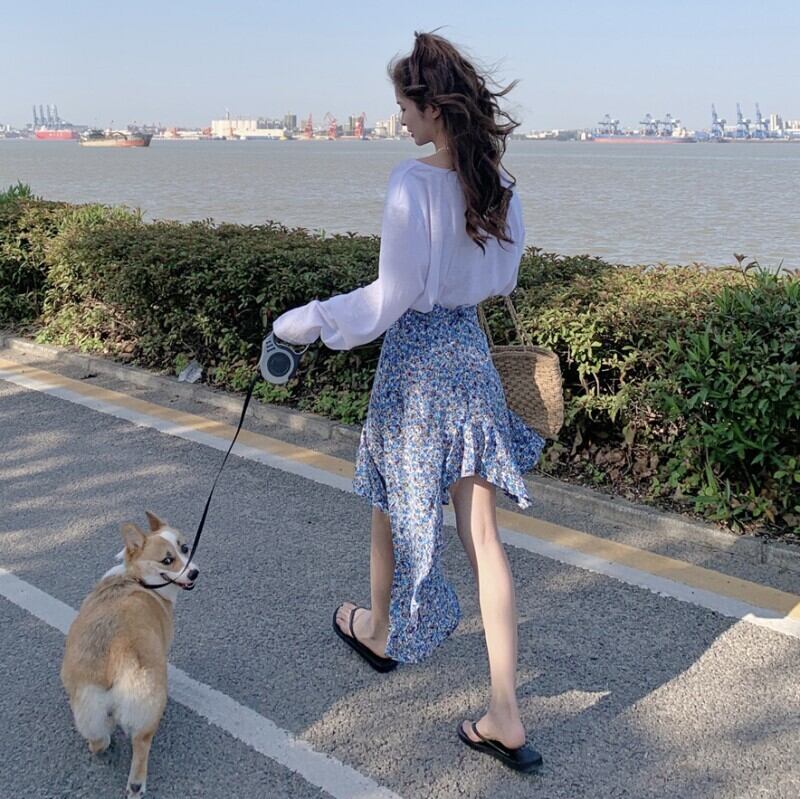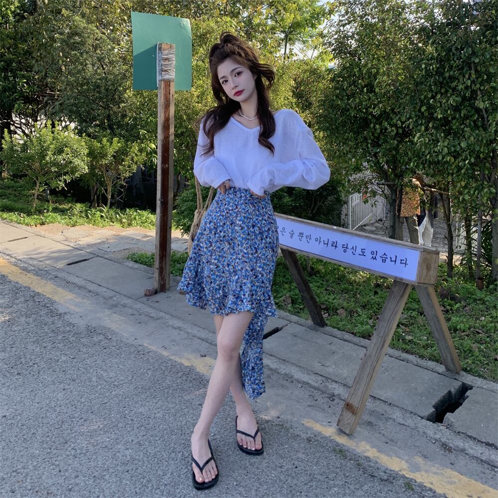 White long-sleeved T-shirt women's summer thin sunscreen blouse design sense niche chic loose V-neck top ins tide ロング ホワイト ブラウス サマー 夏物 Vネック Tシャツ s576111276859736