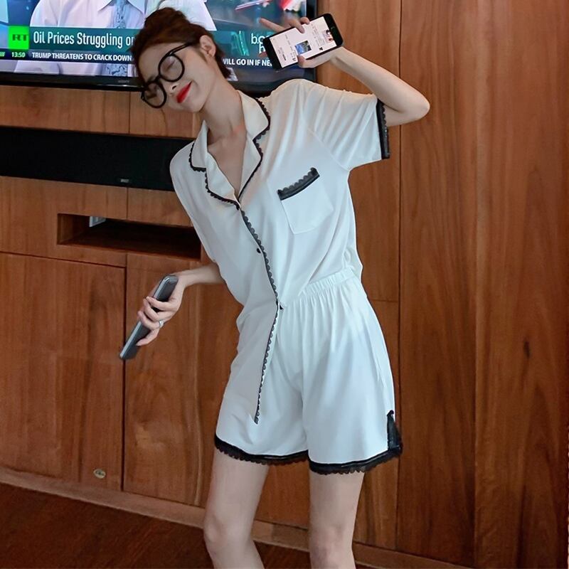 Ins style pajamas female net red style 2022 summer net red thin section small loose two-piece suit high-end sense レッド サマー 夏物 s576113540639806