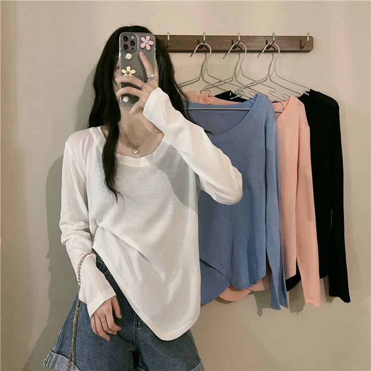 White long-sleeved T-shirt women's spring thin sunscreen blouse 2022 new design sense of small irregular top clothes ロング ホワイト ブラウス スプリング 春物 Tシャツ s576153285655444