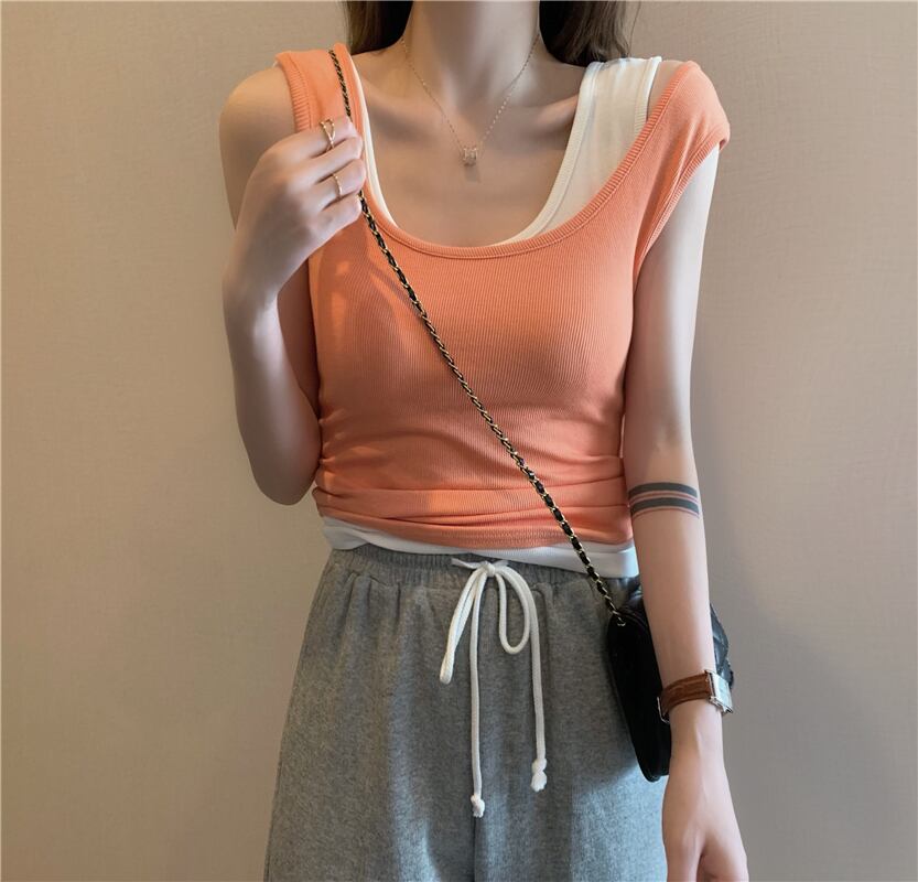 White sports camisole women's trendy summer 2022 new net red slim fit short sleeveless top ショート ホワイト レッド 半袖 ハーフスリーブ サマー 夏物 ノースリーブ スリム s576197697011323