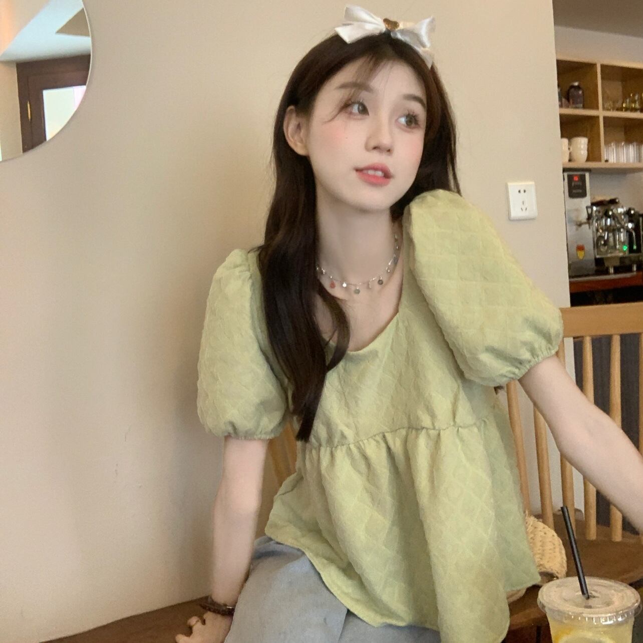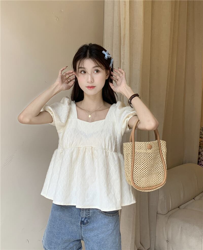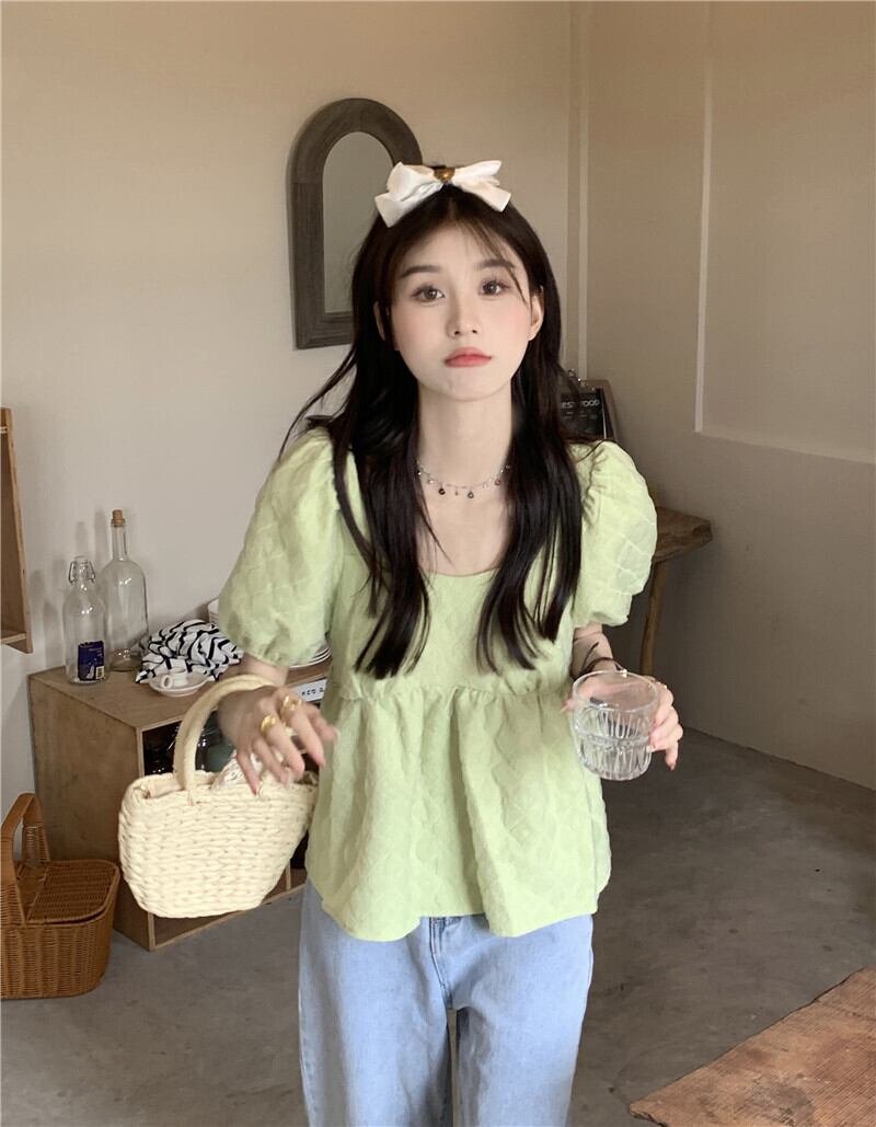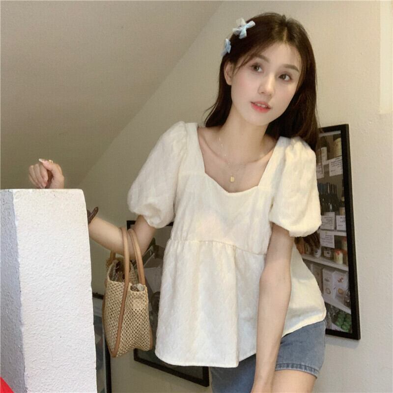 Puff sleeve top women's design sense niche doll shirt summer pure and sweet chic short-sleeved shirt 大人ガーリー スウィート キュート カジュアル サマー 夏物 ピュア s576182874326260