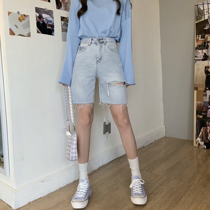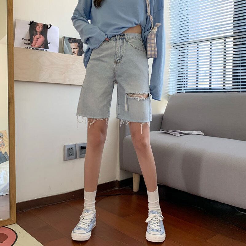 Ripped jeans women's summer design sense niche five-point pants 2022 new high-waisted slim straight wide-leg pants サマー 夏物 スリム s576119918641348