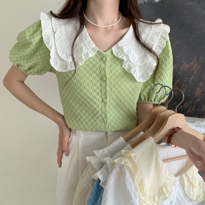 Doll collar shirt women's design sense niche summer 2022 new pure and sweet style gentle puff sleeve top 大人ガーリー スウィート キュート カジュアル サマー 夏物 ピュア s576197285755180