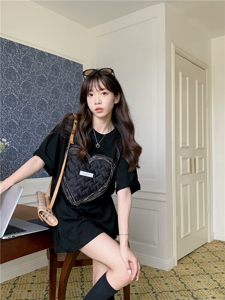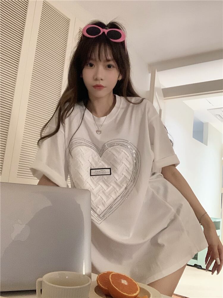 White love short-sleeved T-shirt women's summer design niche 2022 new loose mid-length western style top clothes ホワイト サマー 夏物 Tシャツ s576152303662165