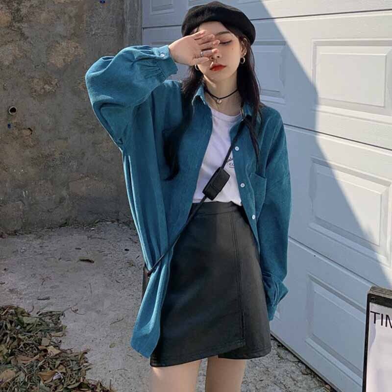 Blue shirt jacket women's spring and autumn design sense niche shirt 2022 new retro Hong Kong style long-sleeved top ロング ブルー レトロ スプリング 春物 オータム 秋物 s576141162147115