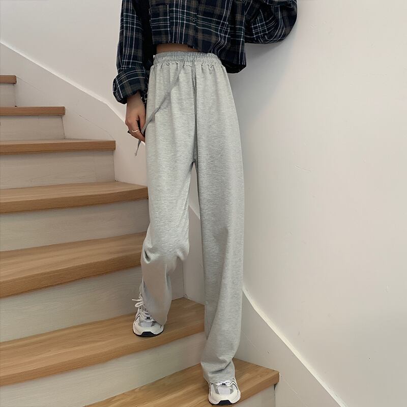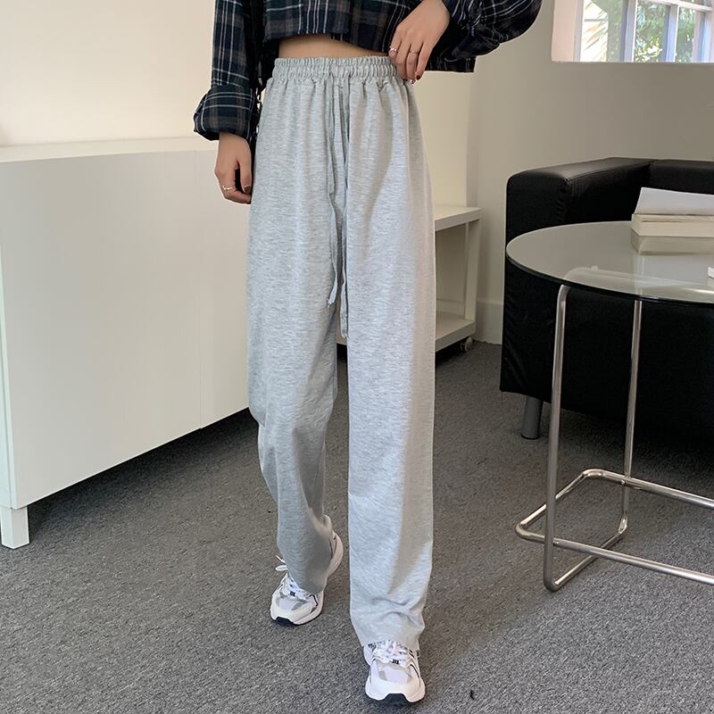Grey sports pants women's spring high waist drape 2022 new loose straight wide leg pants small casual pants ハイウェスト カジュアル スプリング 春物 ワイドレッグ ワイドパンツ s576130830269000