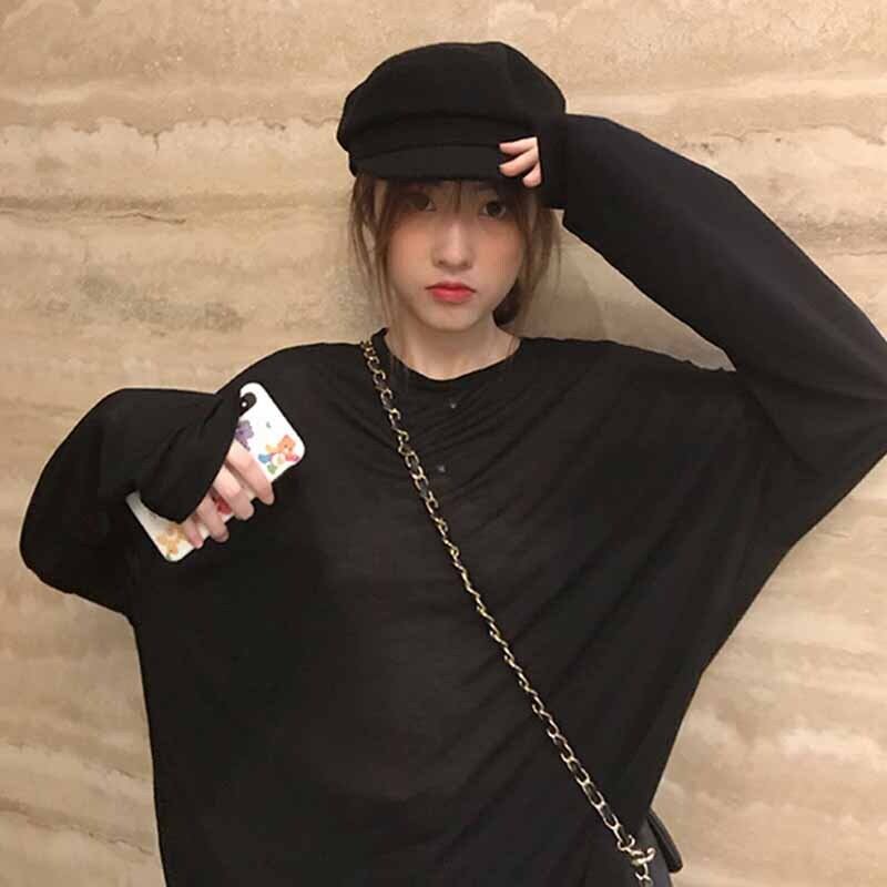Grey long-sleeved t-shirt women's spring and autumn 2022 new chic design niche loose large size top ins tide ロング 大きめサイズ スプリング 春物 オータム 秋物 Tシャツ s5761988367142