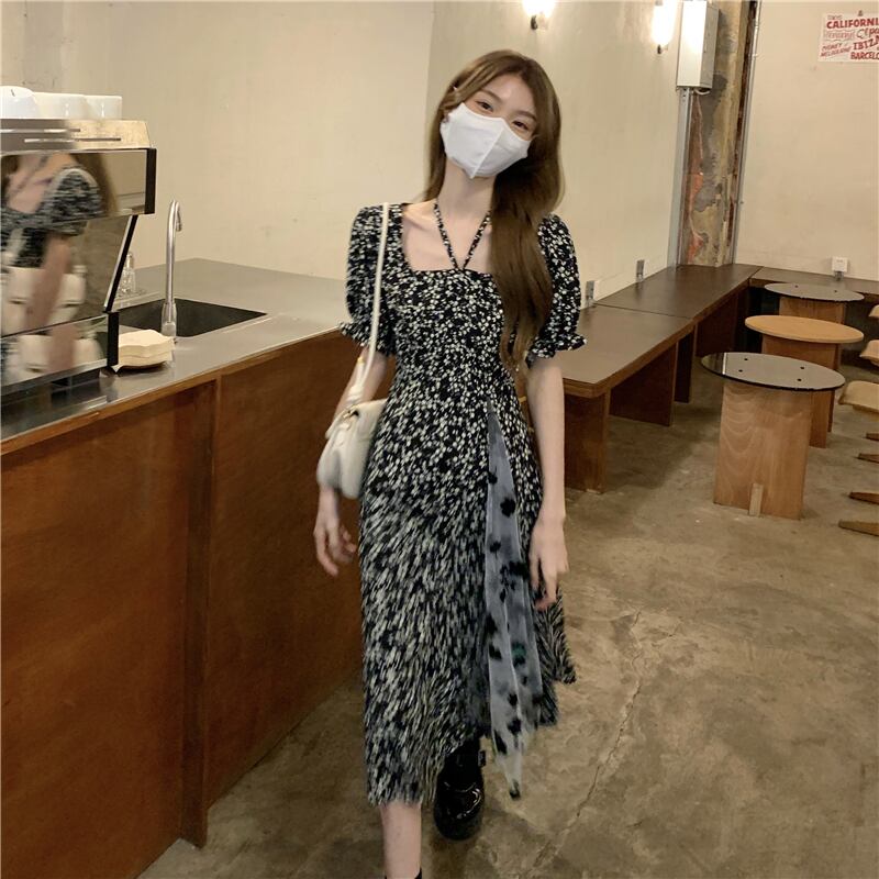 Floral dress female design sense niche summer 2022 new small French chic puff sleeve long skirt ロング サマー 夏物 花柄 スカート s576199457689828
