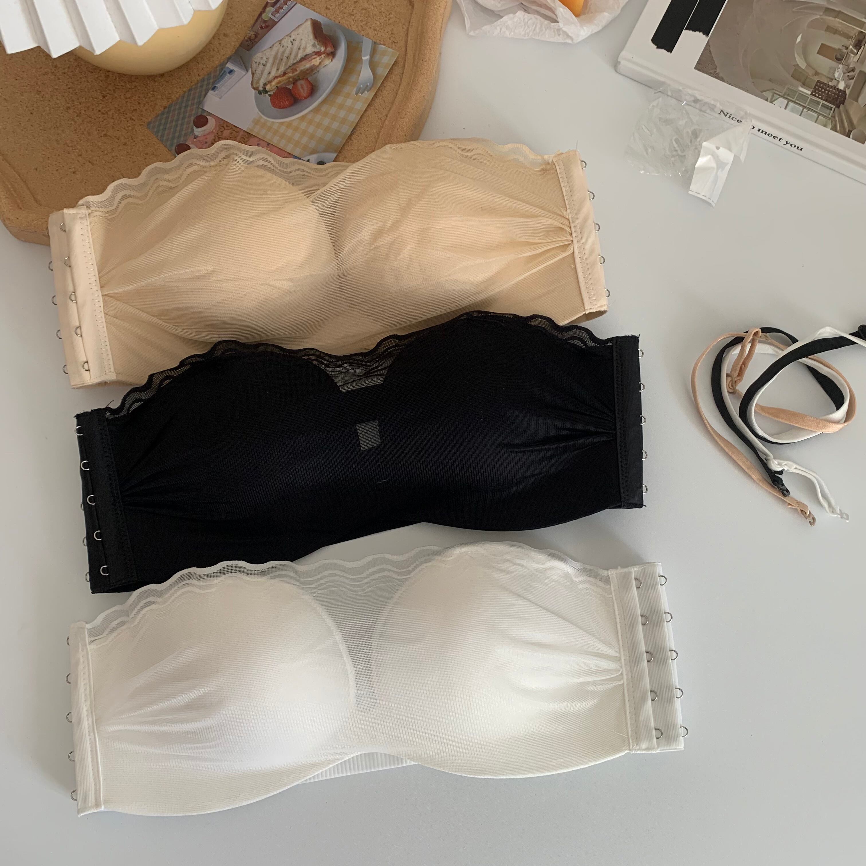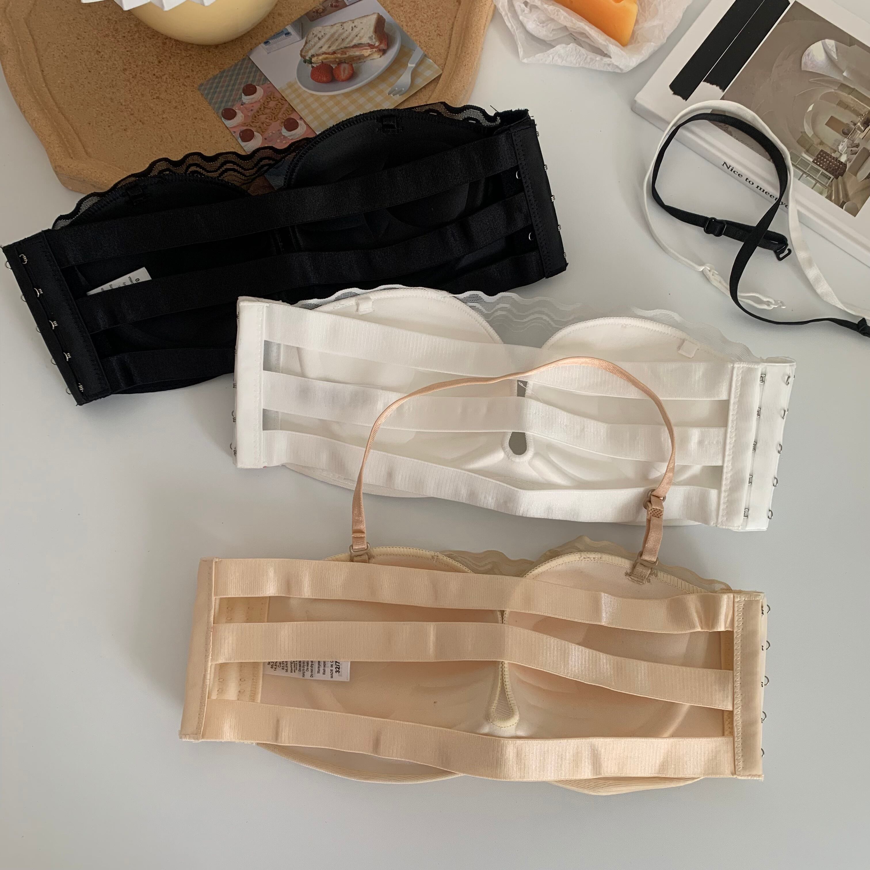 Invisible underwear female summer strapless gathered bra bra wrapped chest non-slip small bra anti-lighting tube top sling レッド サマー 夏物 s576111875662469