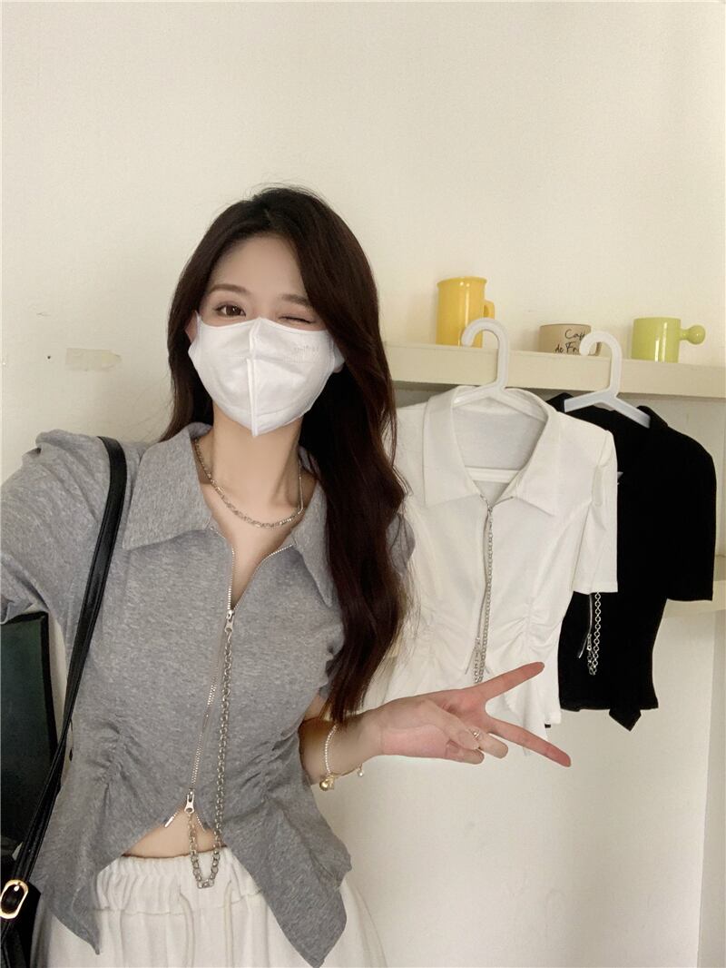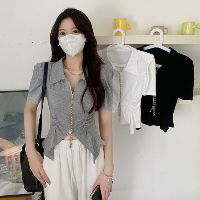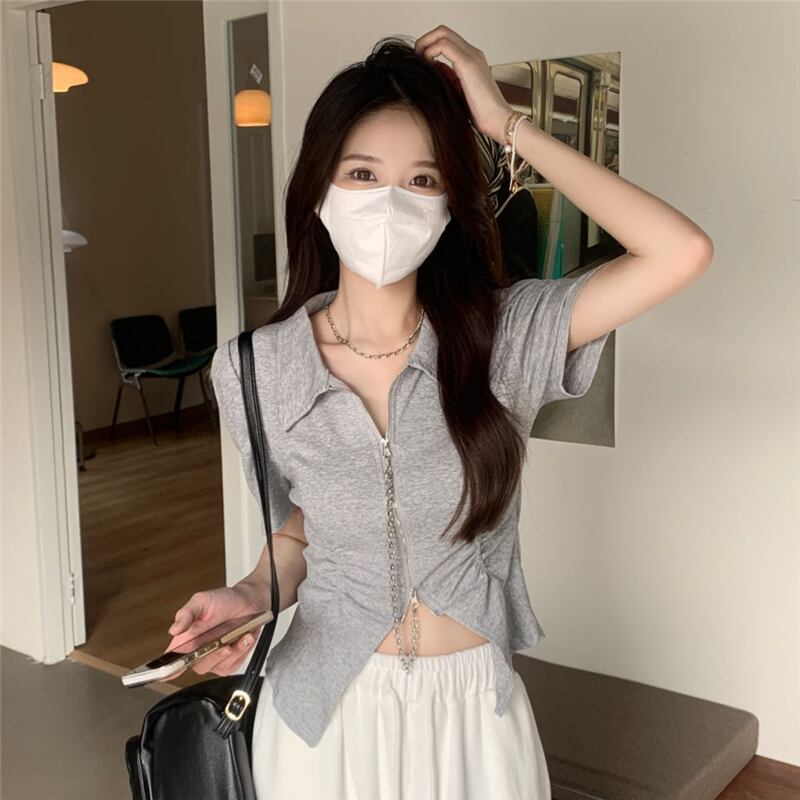 Sweet and cool gray short-sleeved T-shirt women's summer 2022 new design sense of small irregular zipper top ins tide 大人ガーリー スウィート キュート カジュアル サマー 夏物 Tシャツ s576122612384075