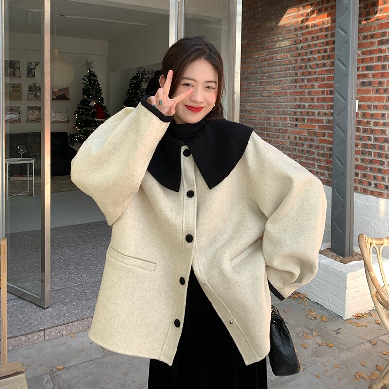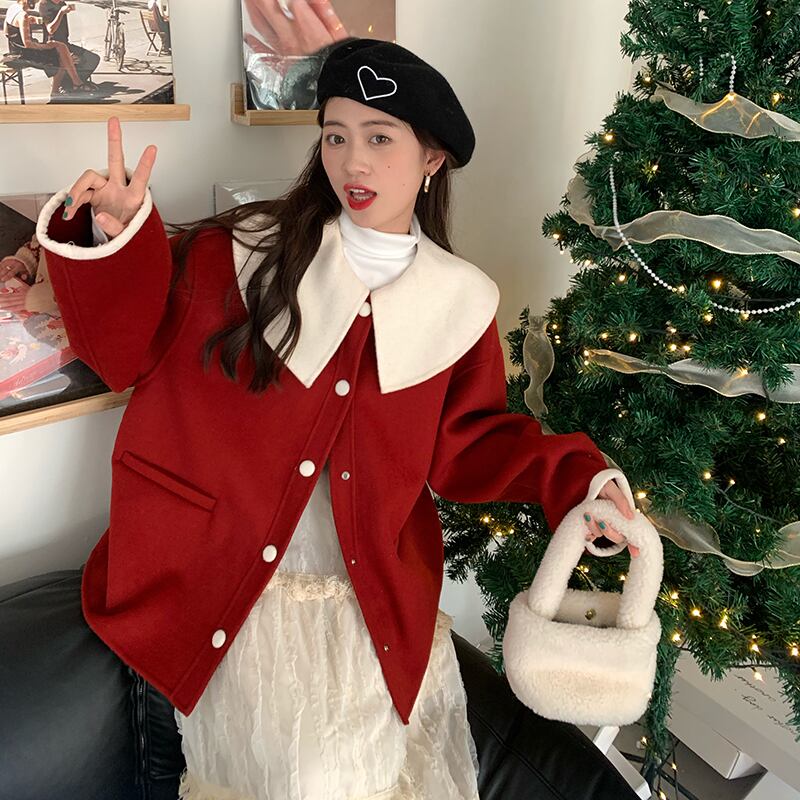 Doll collar woolen coat female autumn and winter small 2022 new Christmas and Year red short woolen coat ショート レッド オータム 秋物 ウィンター 冬物 s576119750170104