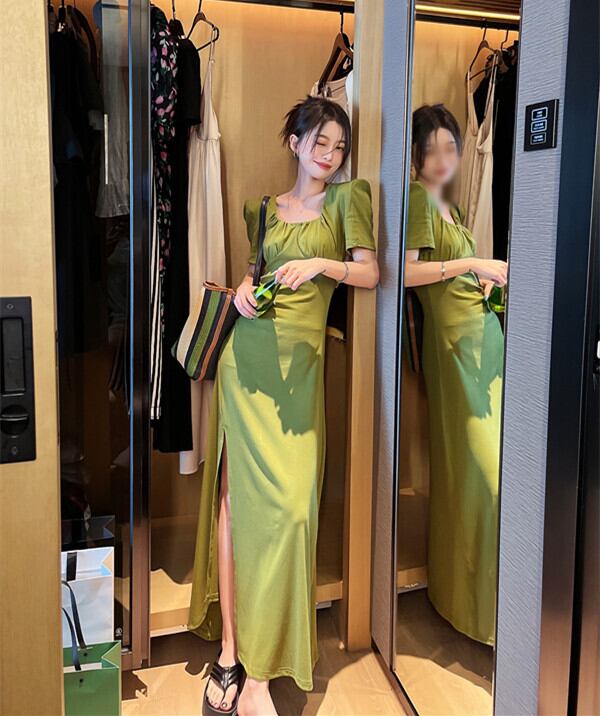 Green dress women's summer design sense niche 2022 new Hong Kong style slim fit and thin slit long skirt ロング サマー 夏物 スカート スリム グリーン s576170387512374