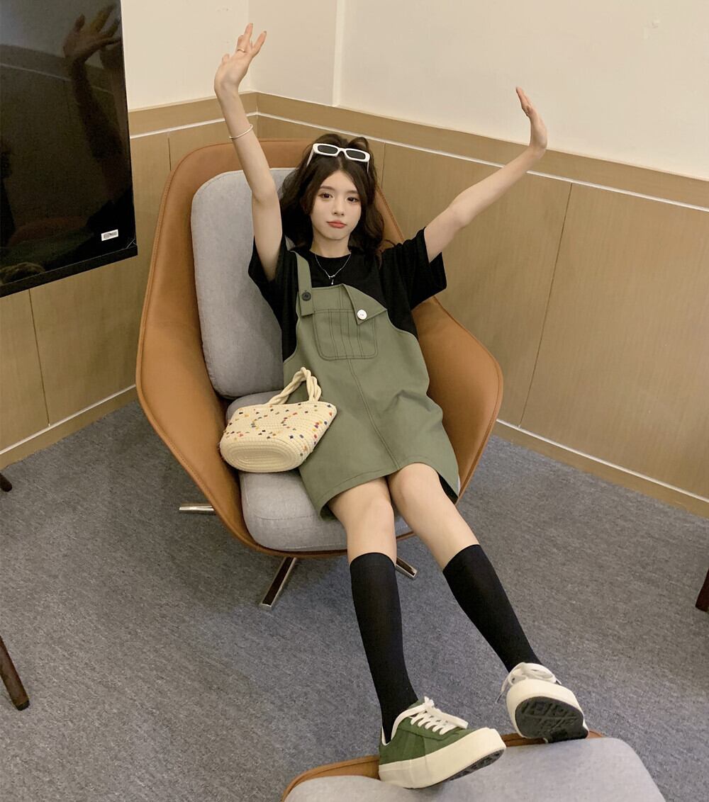 sense niche fake two-piece stitching striped short-sleeved T-shirt dress women's 2022 summer new casual skirt カジュアル サマー 夏物 スカート ストライプ Tシャツ ステッチ s576181101248031