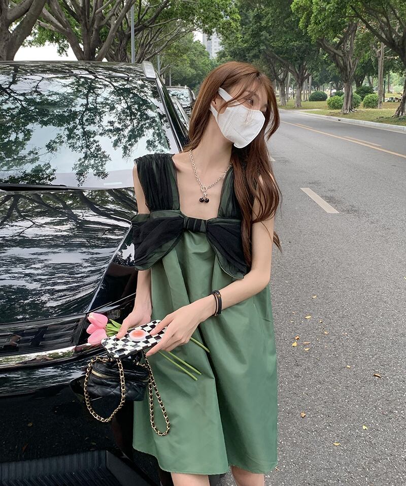 Bow knot strap skirt women's summer design sense niche sleeveless dress 2022 new milk sweet doll skirt 大人ガーリー スウィート キュート カジュアル サマー 夏物 ノースリーブ スカート s576170258135334