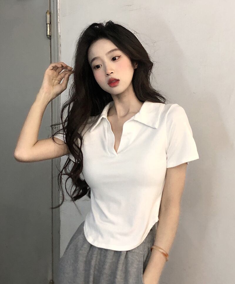 White POLO collar short-sleeved T-shirt women's ins tide summer 2022 new slim fit and thin irregular short top ショート ホワイト サマー 夏物 スリム Tシャツ s576159573201643