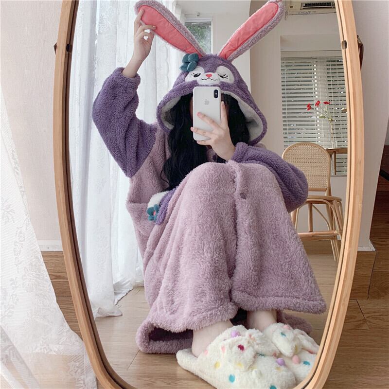 Coral velvet one-piece pajamas women's winter thickening and velvet 2022 new cute outer wear flannel warm home clothes 大人ガーリー スウィート キュート カジュアル ウィンター 冬物 s5761873007736