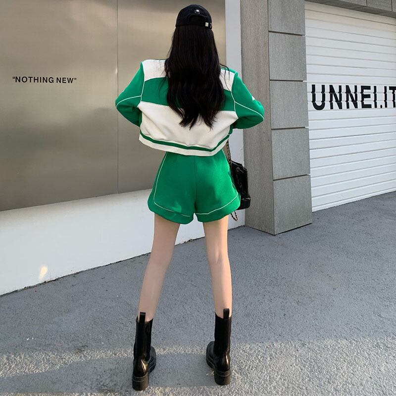 Cool salt series Hong Kong-style fashion suit female early spring 2022 new baseball unim shorts small fried street two-piece set ストリート スプリング 春物 ショーツ ブルマー s576152391476994