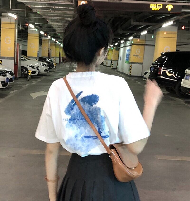 Pure cotton short-sleeved T-shirt women's summer 2022 new design small oversize Western style white top ホワイト コットン サマー 夏物 Tシャツ s576135009176034