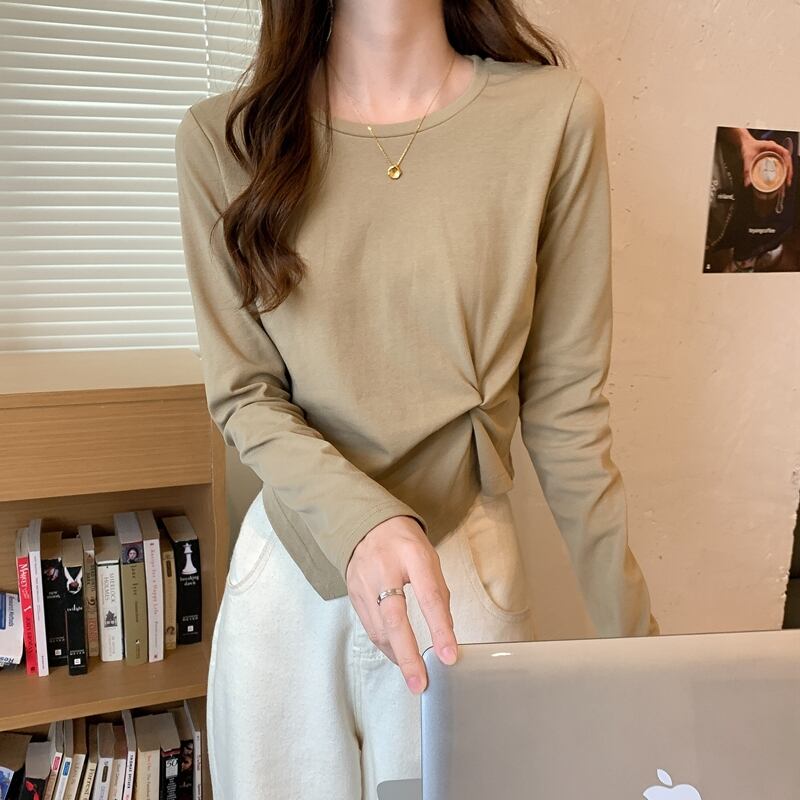Pure desire sweet short top women's spring and autumn bottoming shirt 2022 new design white long-sleeved t-shirt ショート ロング ホワイト 大人ガーリー スウィート キュート カジュアル スプリング 春物 オータム 秋物 Tシャツ s576128381984583
