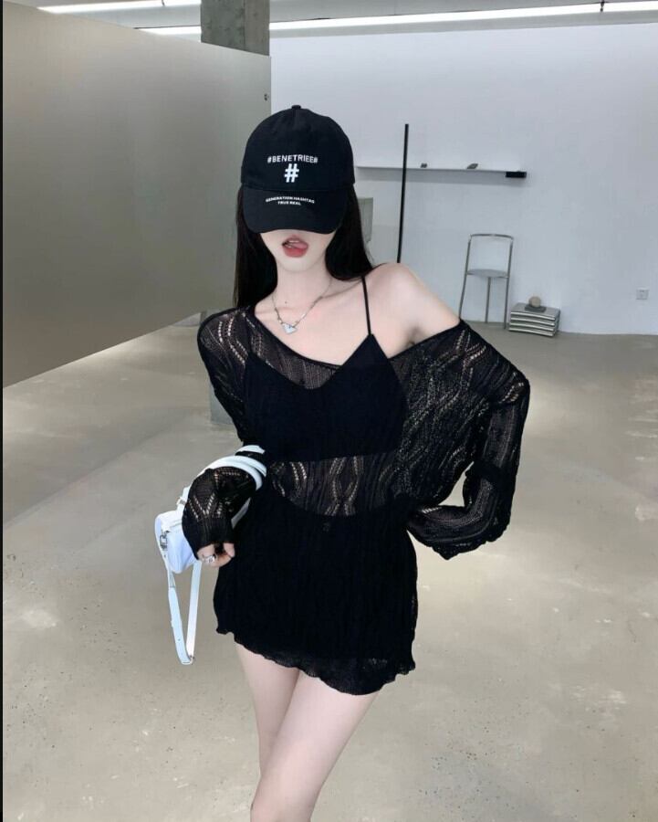 Hollow knitted sweater women's summer thin sunscreen blouse 2022 new design air-conditioning shirt backless chic top ブラウス サマー 夏物 s576165802182229
