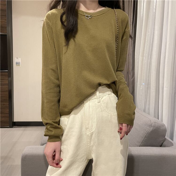 Spring and autumn 2022 new version gray short thin sweater long-sleeved bottoming knitted sweater eign style top women's clothing ショート ロング スプリング 春物 オータム 秋物 s576142307357669