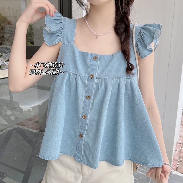 style Western-style age-reducing top clothes women's summer design niche chic shirt 2022 new small flying sleeve shirt サマー 夏物 s576144075304300