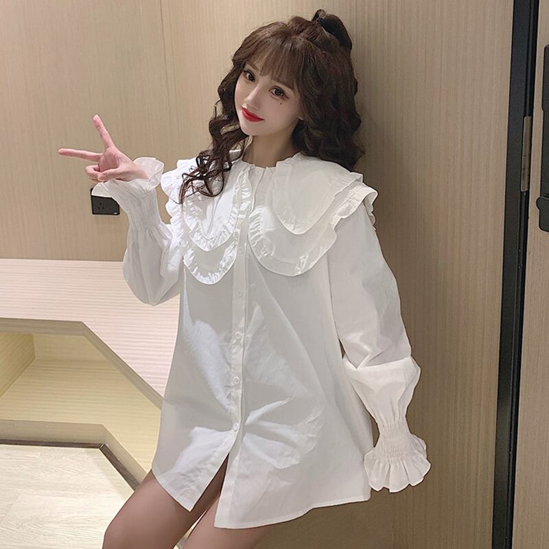 Doll collar shirt women's design sense niche shirt spring and autumn 2022 new high-end blue small inner top ブルー スプリング 春物 オータム 秋物 s576165331213449