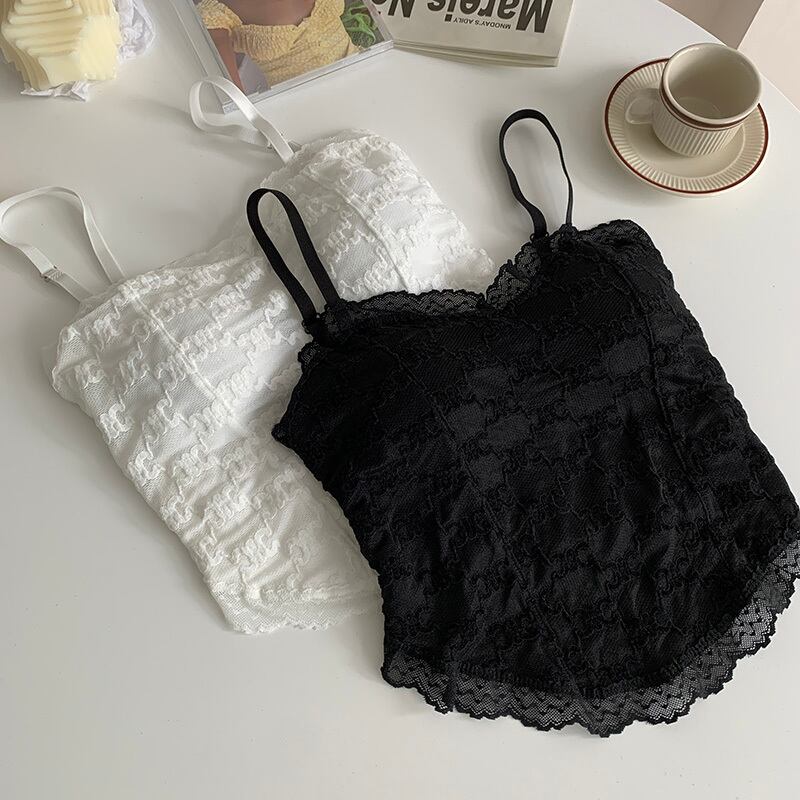 Lace Camisole Women's Inner Summer Pure Desire Hot Girl Sexy Chic Slim Short Top Wrapped Around the Chest ショート レース サマー 夏物 スリム ピュア s576136108910467
