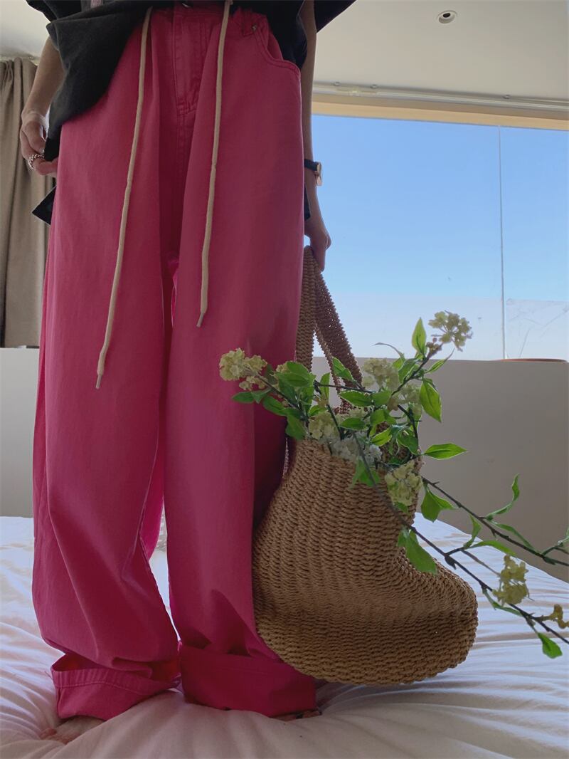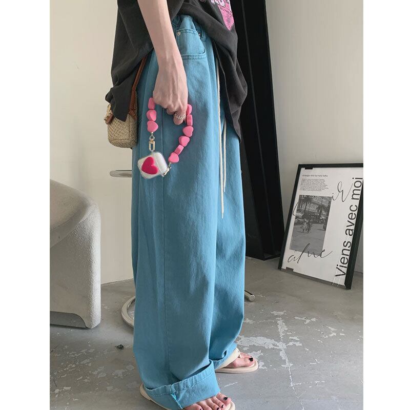 Chic Hong Kong-style jeans women's summer high-waisted drapey mopping pants 2022 new straight loose wide-leg pants trendy サマー 夏物 s57618692135537