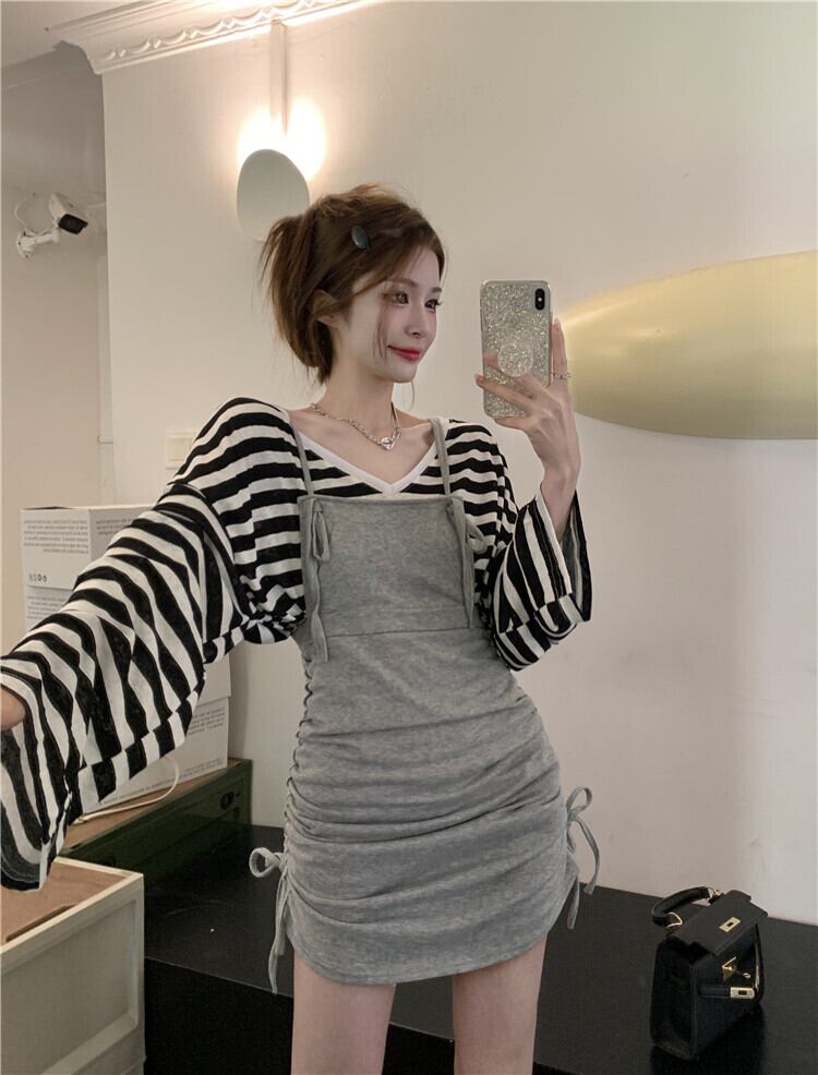 Hot gray suspender skirt female summer design sense small dress 2022 new chic hip short skirt ショート サマー 夏物 スカート s576134539945152
