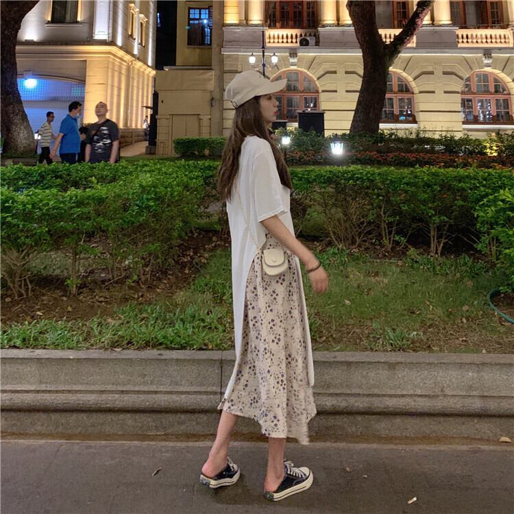 White short-sleeved T-shirt women's summer 2022 new design small irregular loose medium and long top clothes ロング ホワイト サマー 夏物 Tシャツ s576135992059482