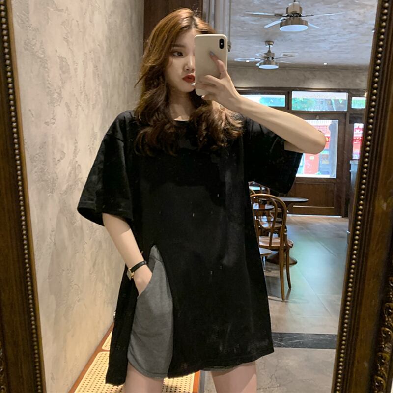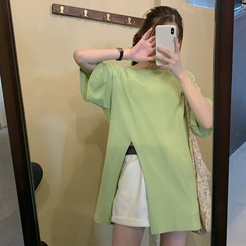 Purple short-sleeved T-shirt women's early spring 2022 new loose version oversize mid-length slit top スプリング 春物 Tシャツ パープル s576168760156313