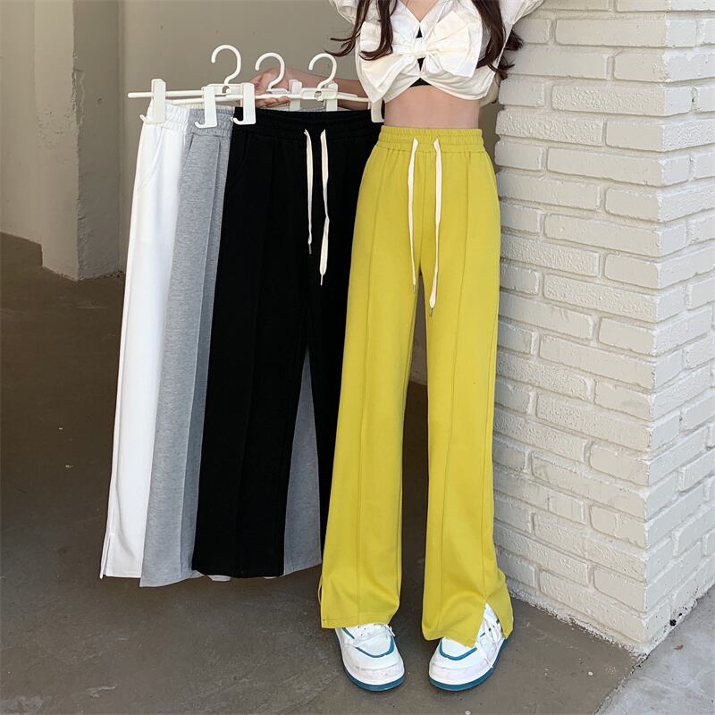 Slit wide-leg pants women's high waist drape gray sports pants summer design straight loose loose mopping casual pants ハイウェスト カジュアル サマー 夏物 s576116257570264