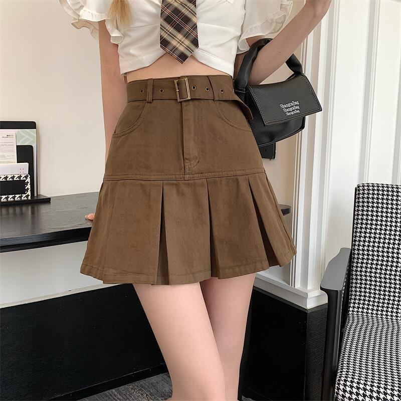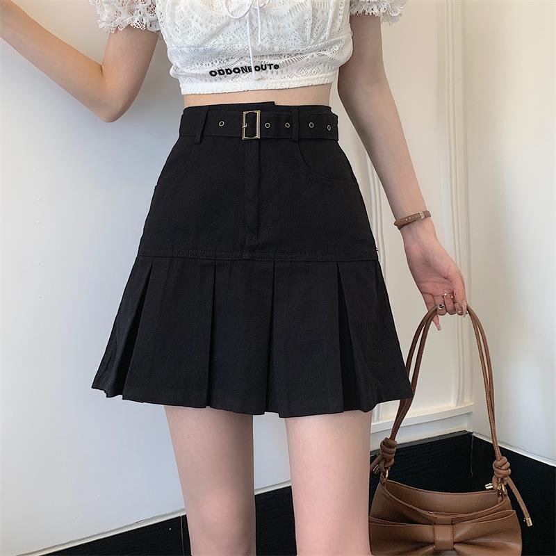 Denim skirt women's summer design pleated skirt 2022 new small high waist bag hip A-line short skirt ハイウェスト ショート プリーツ サマー 夏物 スカート Aライン s576125842614220