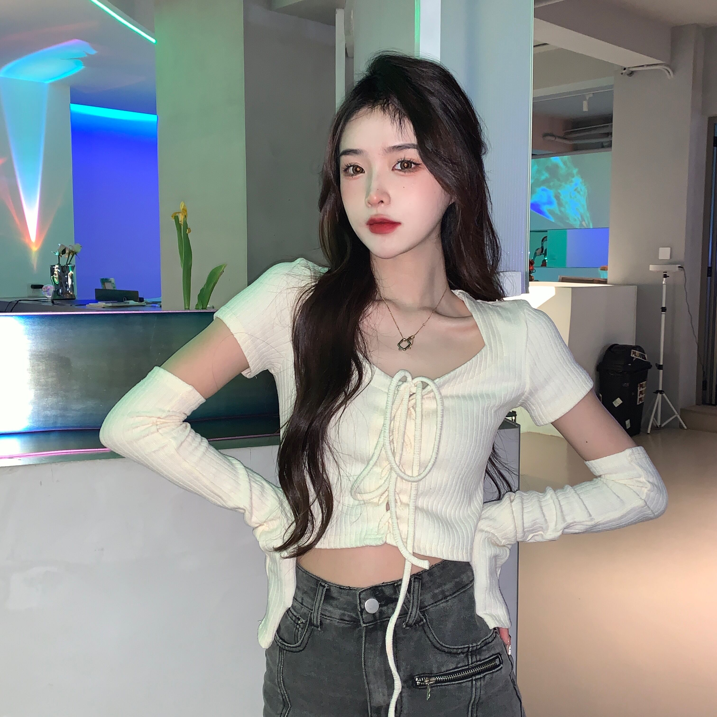 Hot navel short top clothes women's summer 2022 new design sense niche slim short-sleeved T-shirt ins tide ショート サマー 夏物 スリム Tシャツ s576110333498123