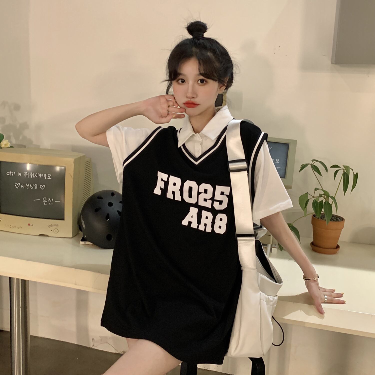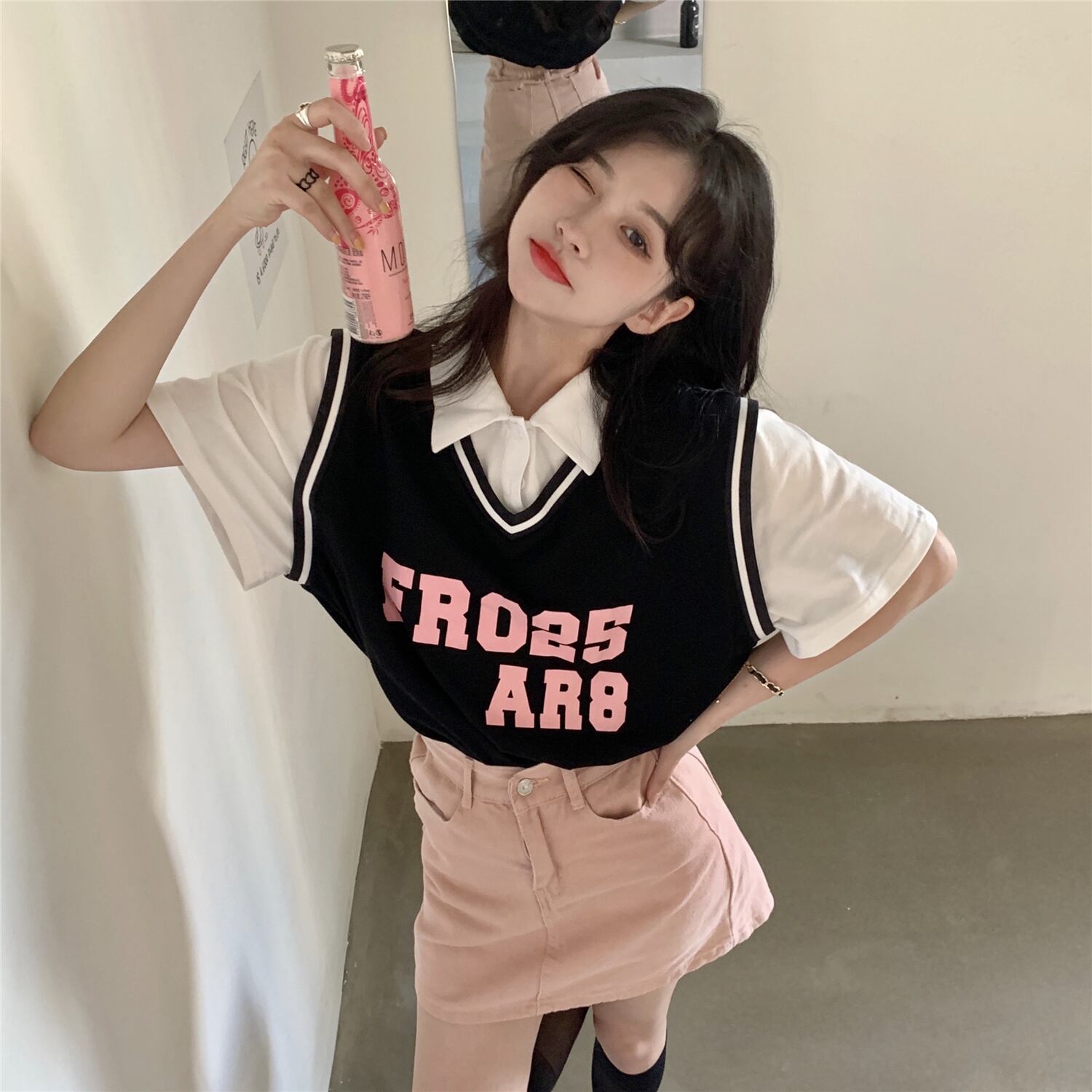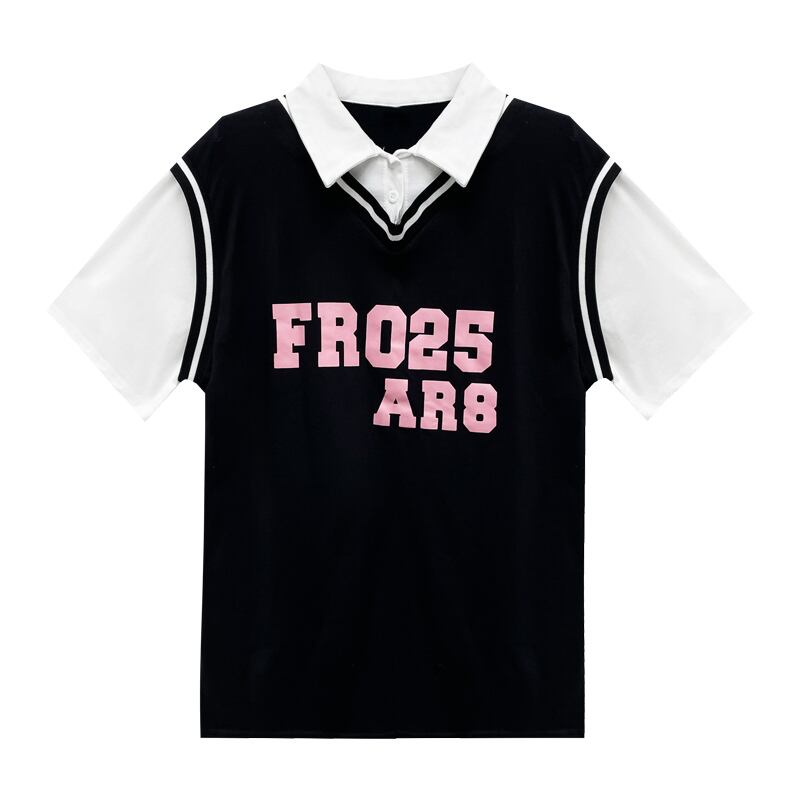 Polo collar short-sleeved T-shirt women's design sense niche summer American retro sports wind fake two loose top clothes レトロ サマー 夏物 Tシャツ s576169448494471