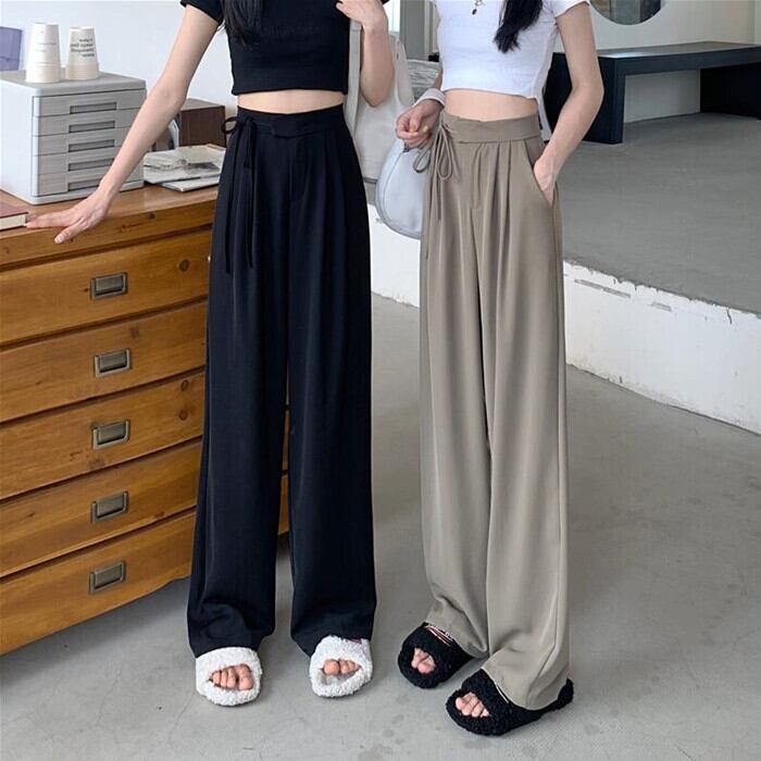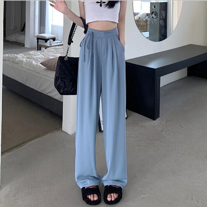 waist drooping wide-leg pants women's summer 2022 new high-end loose straight-leg mopping pants black casual pants ブラック カジュアル サマー 夏物 s576199378849648
